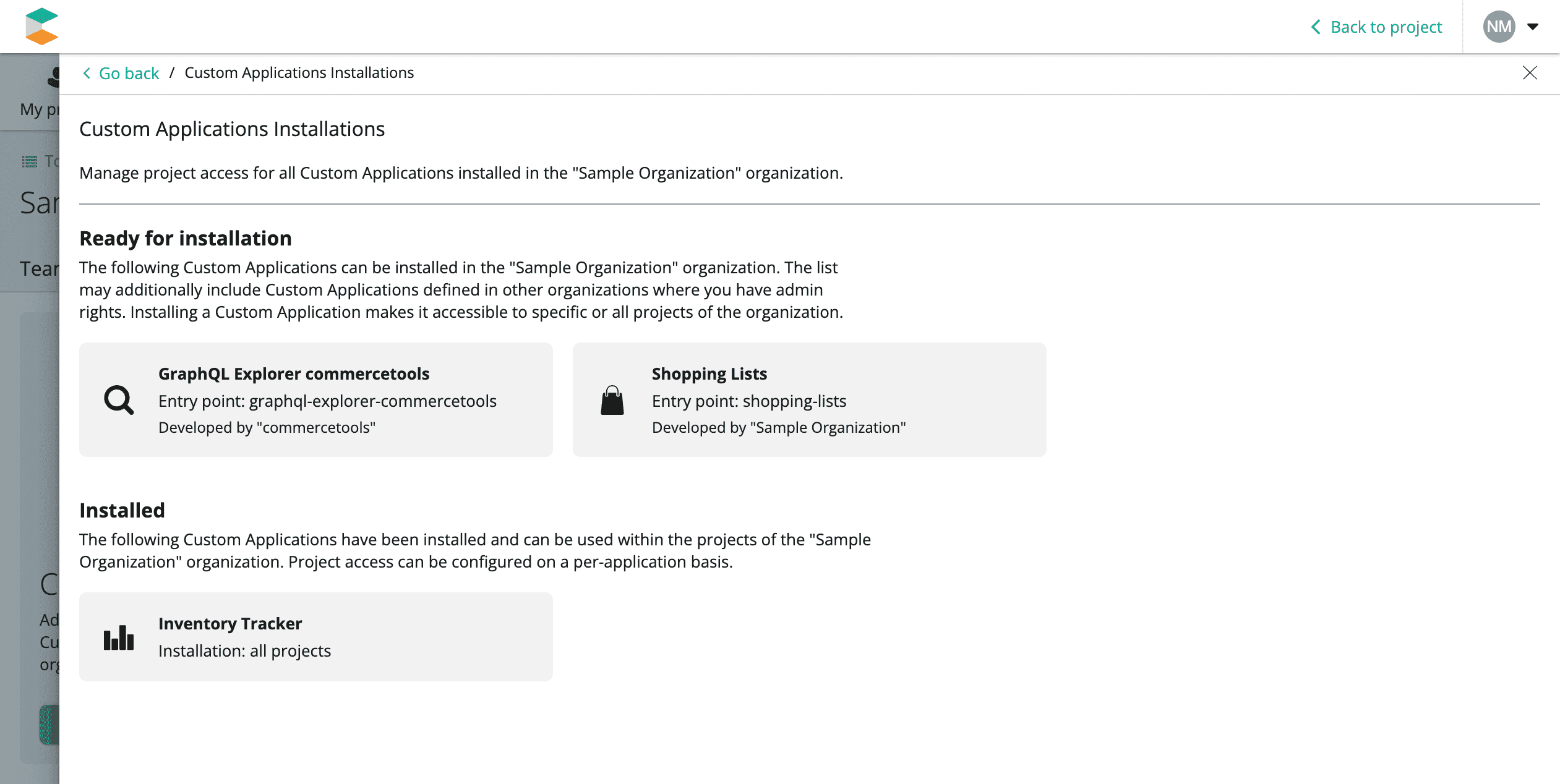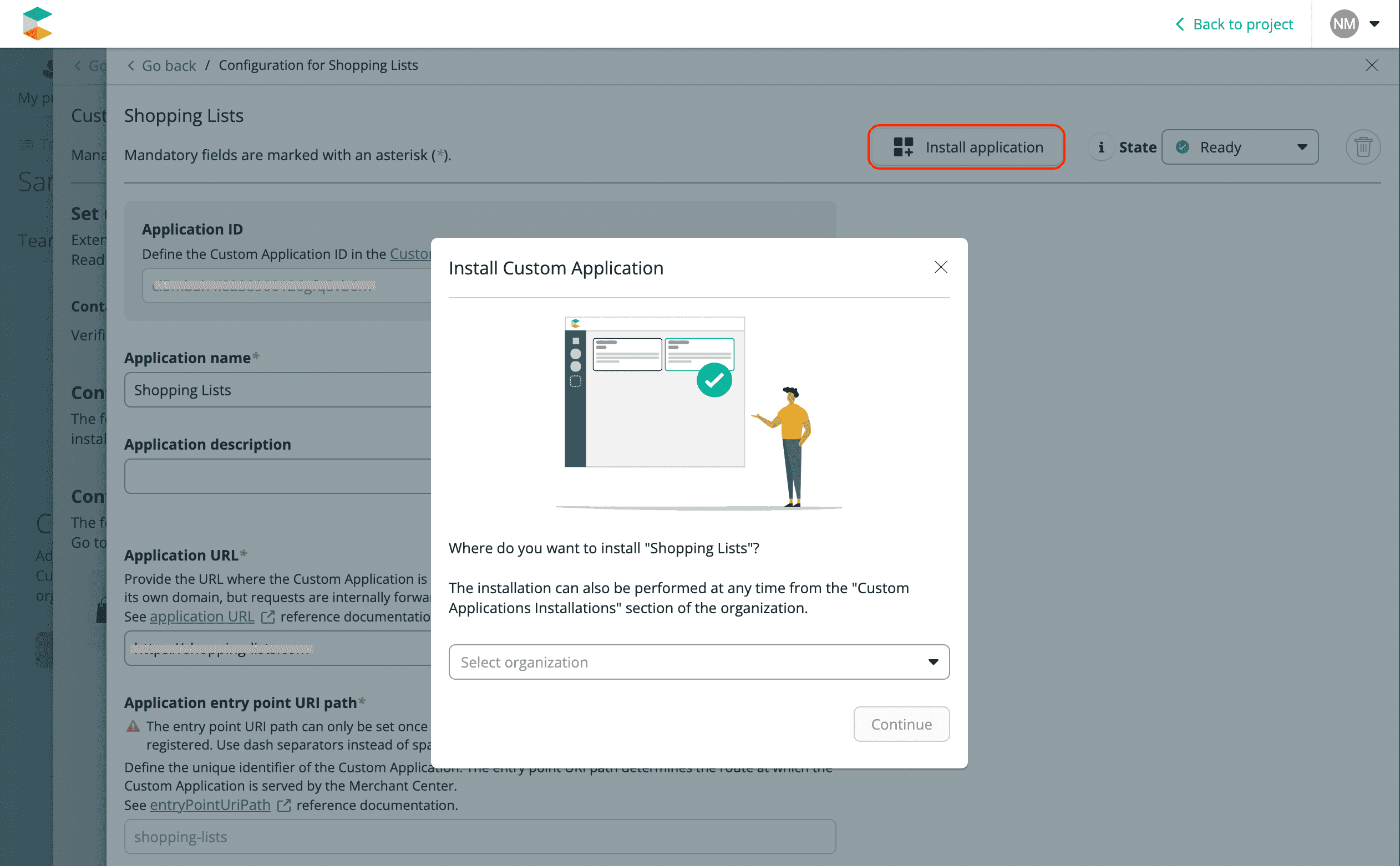 Install the Custom Application to make it accessible in the Projects of your Organization.