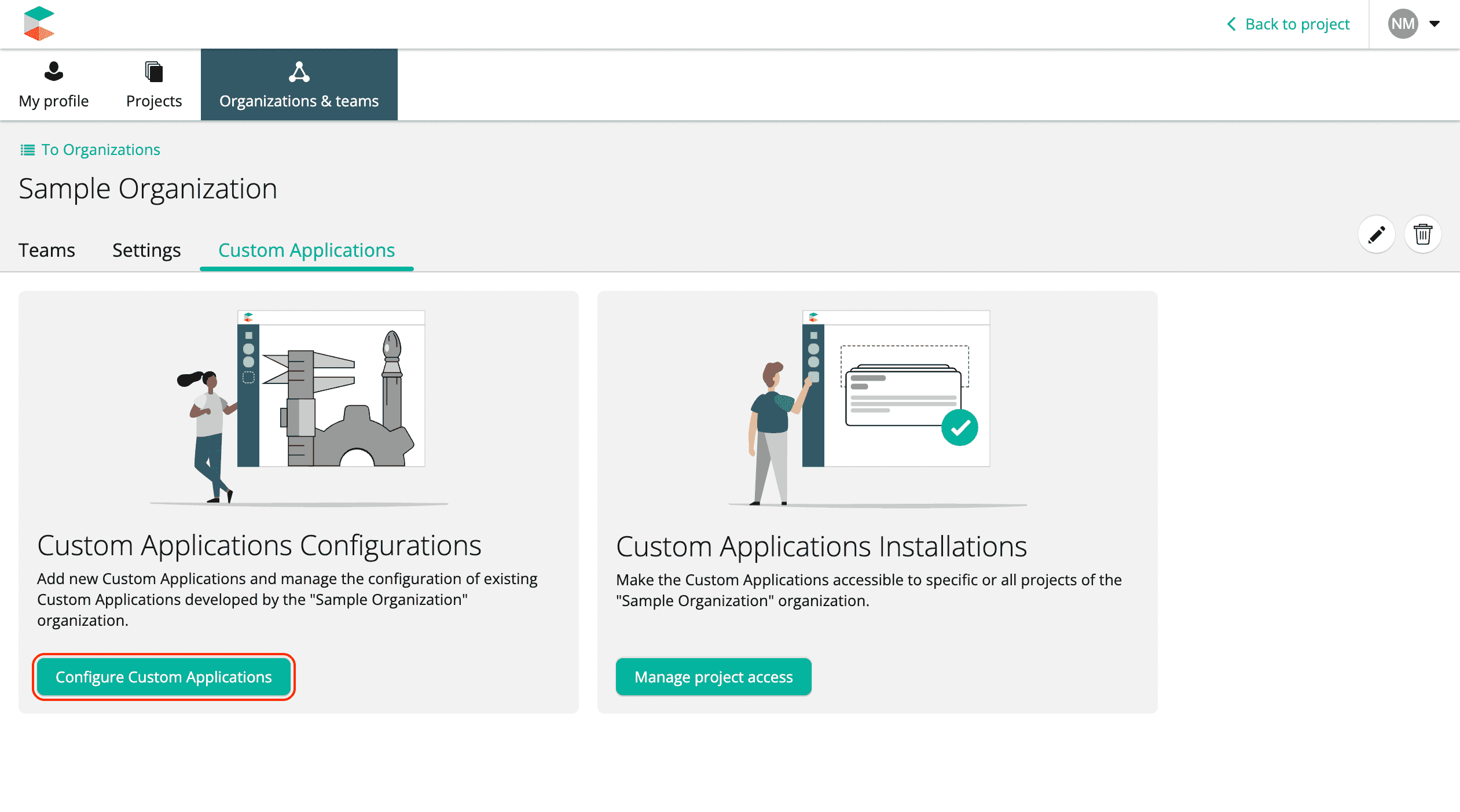 - Installing the Custom Application to make it accessible in the Projects of your Organization.