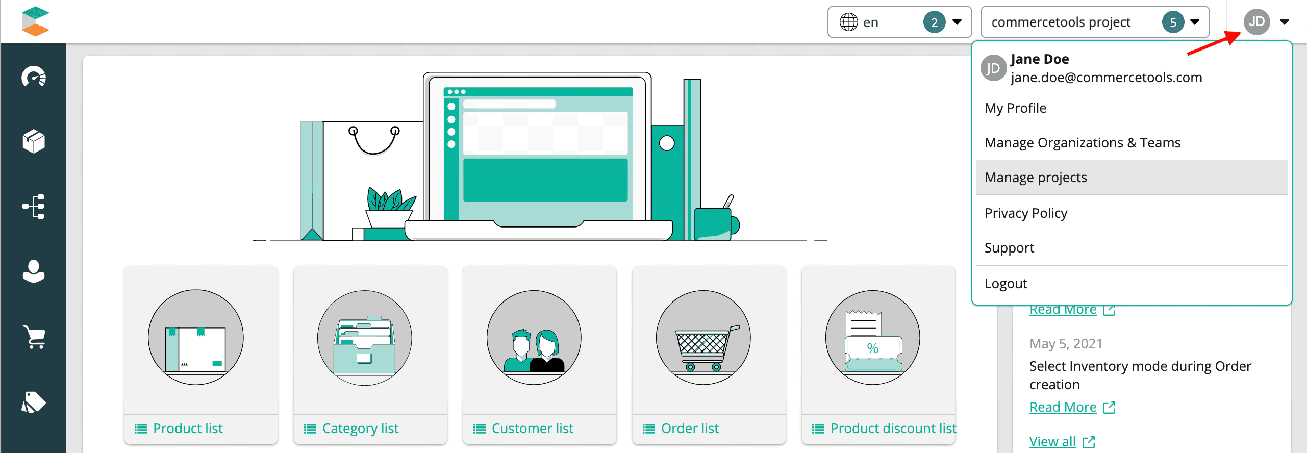 You can use the Project switcher drop-down at any time to switch between Projects you have access to.
