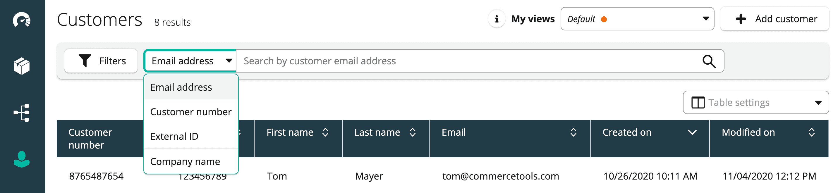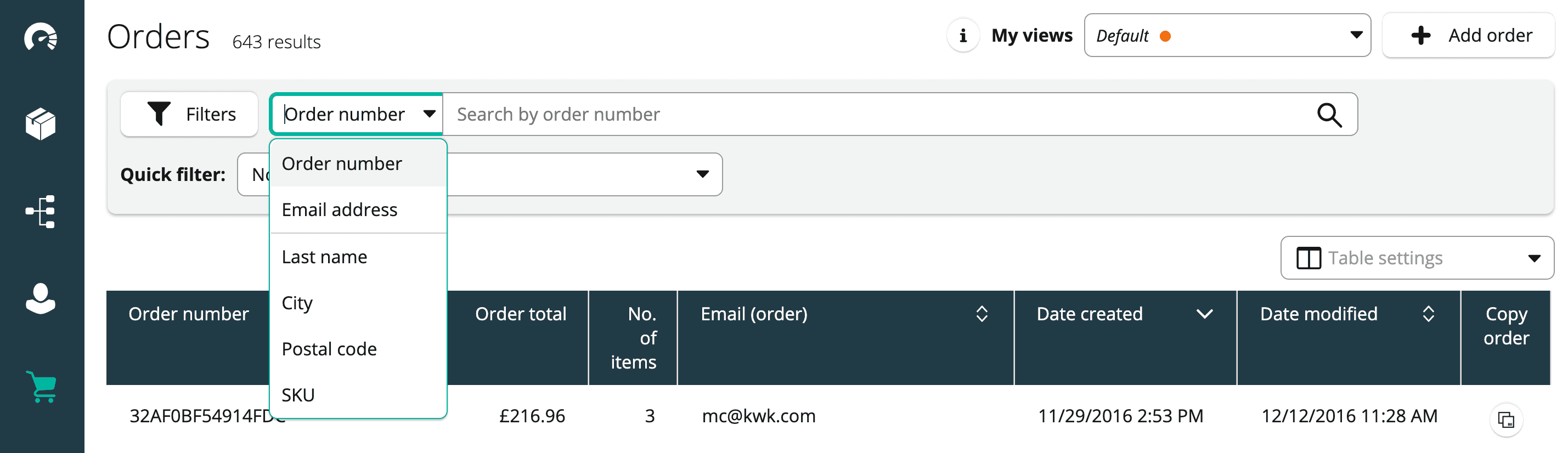 The Orders and Customers search now allows you a fine-grained search. Select the field you are looking for on the dropdown and enter the value in the search input.