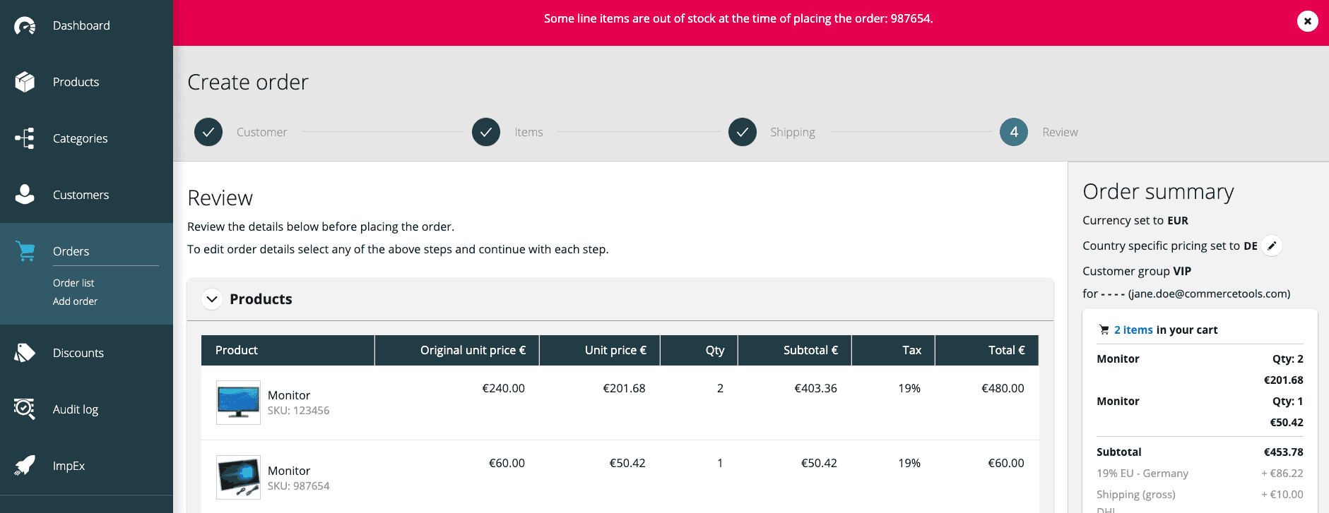If you get an OutOfStock error during Order creation, it may be due to the following: