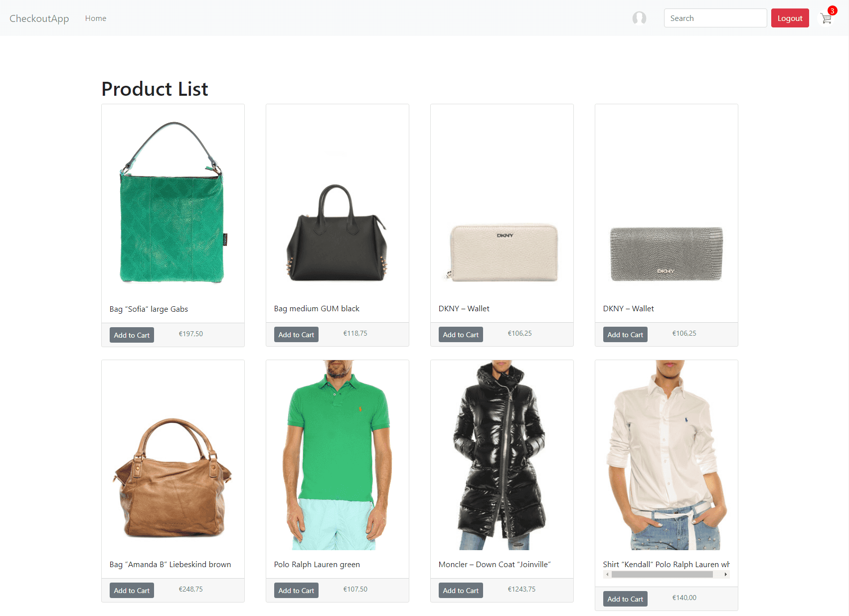 The demo application contains functionality for displaying Products, adding Products to a Cart, logging in a Customer, and migrating a guest Cart to a Customer Cart.