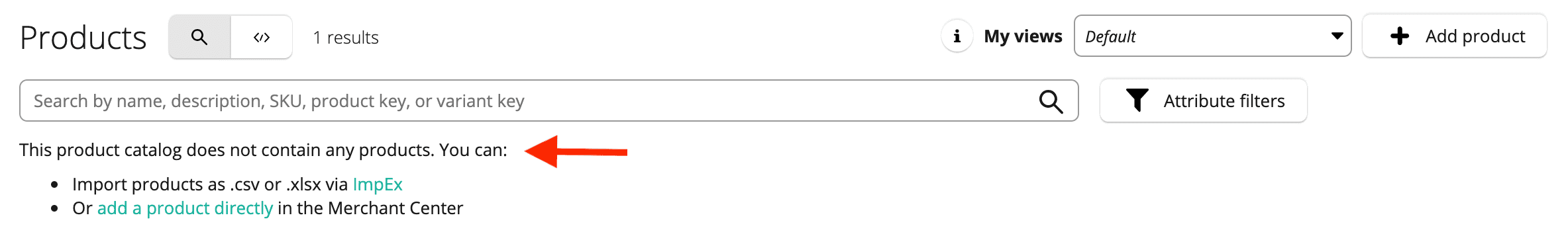 To be really sure that all products have been removed from the project we can verify their absence in the Merchant Center . If the Products page looks empty like the one shown below you have succeeded in deleting all your products.
