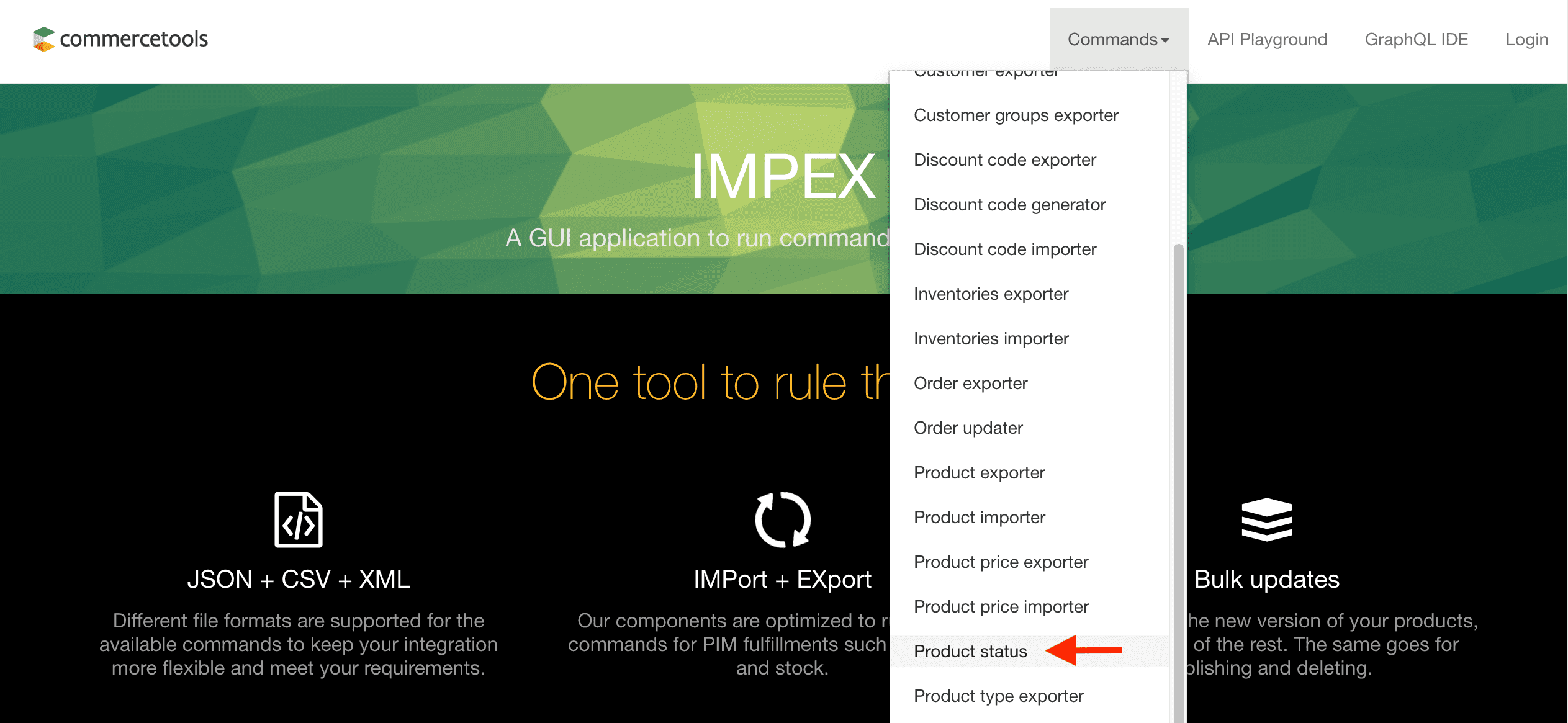 From there we select the ImpEx Product State command that we are going to use for deleting the products like shown below: