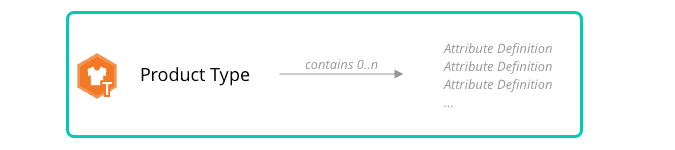 A Product Type has zero or more Product Attribute Definitions. Products, Categories, and Product Types can exist independent of each other, but Product Attributes are defined as part of a Product Type.