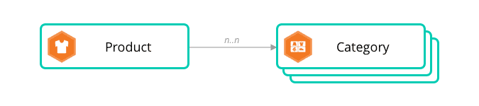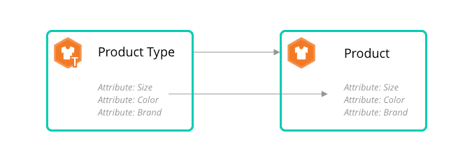 At a high level, entities (objects or resources in the API) relate to each other using containment and assignment. Product Types contain Product Attribute Definitions. Attributes are passed on to Products and Product Variants. Products and all their Product Variants are assigned to Categories.